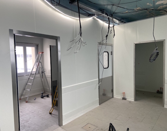 Les travaux d'installation des panneaux et menuiseries isothermes sont finalisés avec l'asservissement des portes de la salle ISO7 mise en service fin 2020.
